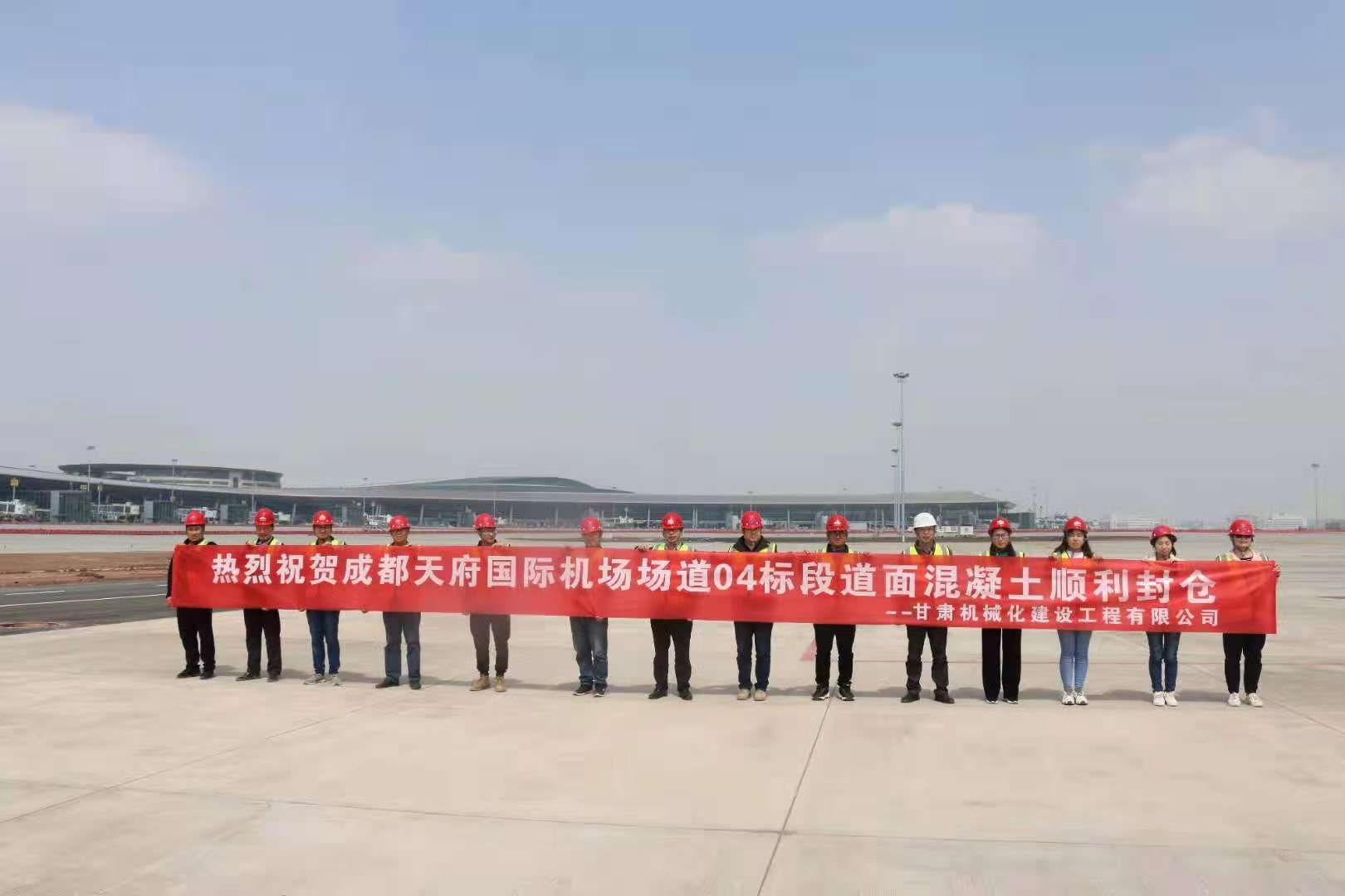 項目工程于2019年4月9日正式開工。同年12月7日道面水泥混凝土試驗段開始施工,于2021年3月23日順利封倉。此次封倉標志著項目部已全部完成承包范圍內25.6萬立方米的水泥穩(wěn)定碎石攤鋪、25.5萬立方米的道面混凝土澆筑、7456m的鋼筋混凝土排水溝、585m預留6#下穿通道、遠機位工作休息室等施工內容,為成都天府國際機場盡快投入運營奠定了堅實的基礎。