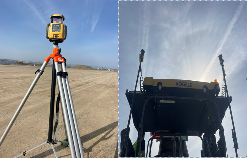 我司首次在烏魯木齊機(jī)場使用mmGPS 3D攤鋪技術(shù),mmGPS 3D攤鋪技術(shù)是指通過衛(wèi)星全球?qū)Ш蕉ㄎ幌到y(tǒng)和激光高精度測量系統(tǒng),立體控制攤鋪的高程精度和平面精度。該技術(shù)克服了常規(guī)掛鋼線施工時掛鋼線下垂、傳感器跳動等問題,同時減少了測量放樣的工作內(nèi)容,很好地控制了結(jié)構(gòu)層厚度、高程及平整度,尤其在多機(jī)聯(lián)鋪?zhàn)鳂I(yè)方式下效果明顯,實(shí)現(xiàn)了“機(jī)械化換人、自動化減人”的理念,減少了人員投入的同時減少了材料的浪費(fèi),降低了項目的安全風(fēng)險,產(chǎn)生了明顯的經(jīng)濟(jì)效益。