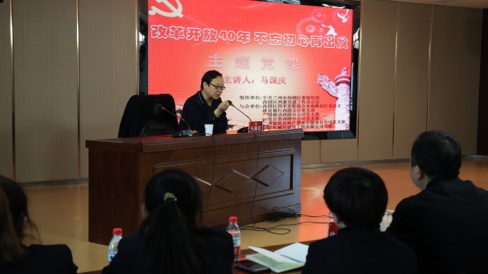 為紀念改革開放40周年,進一步激勵黨員不忘初心、牢記使命。 11月28日,公司黨委牽頭舉辦了 “改革開放四十年 不忘初心再出發(fā)”的主題黨課。120余名黨員在我司大會議室聆聽了講座。本次主題黨課在蘭州市西固區(qū)委組織部和西固區(qū)兩新黨建辦公室指導下開展,本樓宇內(nèi)5家單位以及兩新辦和社區(qū)共同參與。組織這種形式的大黨課,就是貫徹落實全區(qū)組織工作會議精神,加強“五化五強”黨支部建設(shè),推進街道社區(qū)黨建、單位黨建、樓宇黨建互聯(lián)互動,努力提升城市基層黨建工作水平。